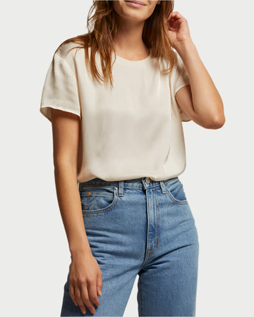 Delphine Satin Crewneck Tee Sugar