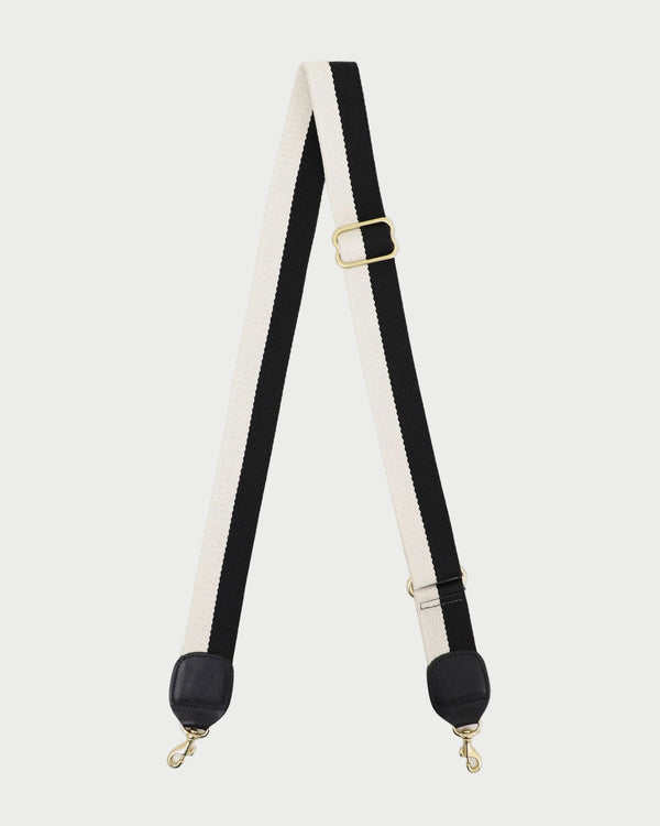 The bold black-and-cream stripe adds a graphic edge, while the adjustable length makes it easy to wear short on the shoulder or long and hands-free.