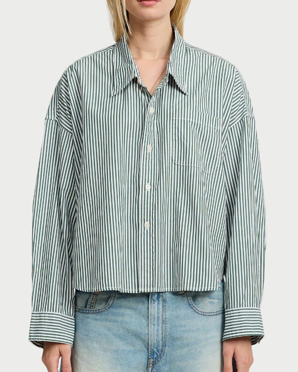 A classic, reimagined. The Denimist Cropped Shirt in Green Stripe brings fresh proportion to a timeless staple. Cut from crisp 100% cotton, the clean lines and abbreviated length offer a modern edge to your everyday button-down. Structured yet easy—this one’s made to wear on repeat.